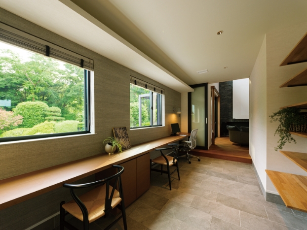 気になったらすぐに庭に出られる。ウッドデッキや土間といった、家の内と外をつなぐ中間的なエリアが、習慣的なアーシングウォークに便利です。