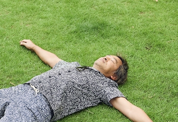 大地でのアーシングウォークに最適な天然芝。標高100mの飯能は水はけがよく、天然芝の育成に理想的な環境です。植物がよく育つ土質はアーシングウォークにも効果的です。